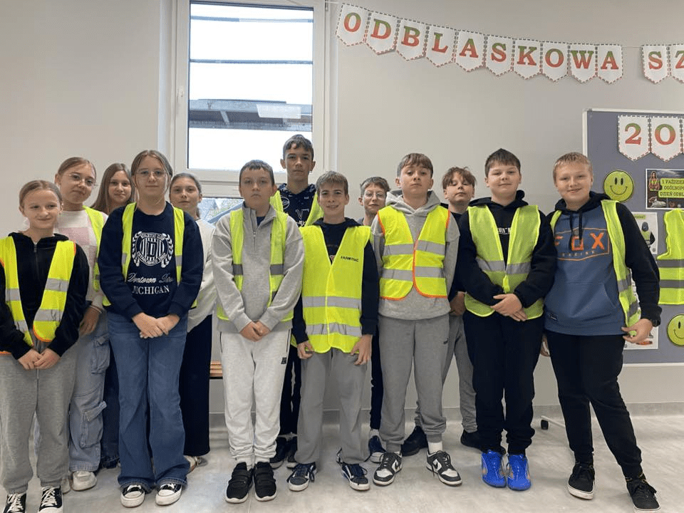 Cała nasza społeczność szkolna rozpoczęła dzień wyjątkowym apelem, podczas którego uczniowie – wyposażeni w kamizelki odblaskowe i szerokie uśmiechy – pokazali, że bezpieczeństwo na drodze jest dla nas bardzo ważne! Dziękujemy Rodzicom za wsparcie i zaangażowanie – to dzięki Wam każdy uczeń świeci dziś przykładem!