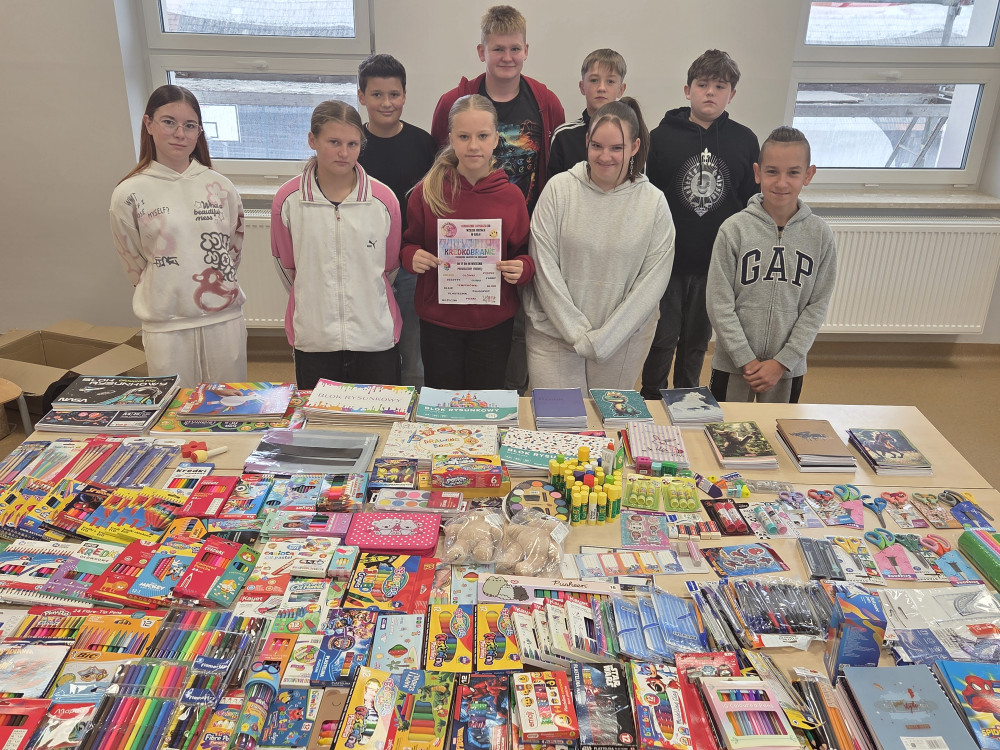 We wrześniu 2025r. Wolontariusze prowadzili na terenie szkoły zbiórkę artykułów papierniczych w ramach akcji Kredkobranie.