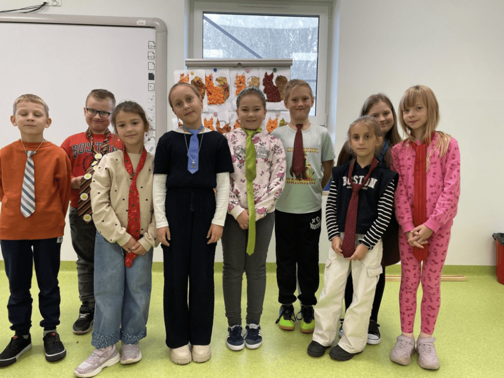 Dnia 19 października na szkolnych korytarzach zrobiło się wyjątkowo elegancko — wszystko za sprawą akcji „Dzień w krawacie”, zorganizowanej przez Samorząd Uczniowski. Celem wydarzenia było pokazanie, że szkolny strój nie musi być nudny, a odrobina stylu potrafi poprawić humor na cały dzień. Krawat stał się biletem do dobrego nastroju — każdy, kto go założył, mógł liczyć na uśmiech lub komplement. Kreatywność uczniów, jak zwykle nie znała granic! A skąd w ogóle wziął się krawat?