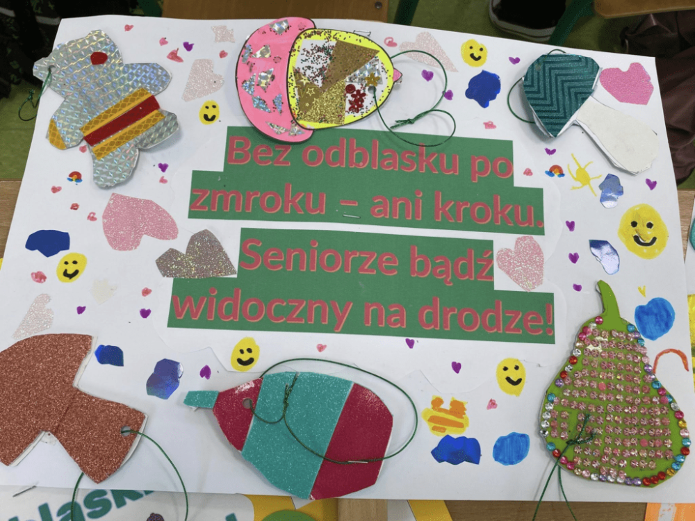 Dziś uczniowie klas I–III naszej szkoły wzięli udział w wyjątkowym happeningu poświęconym bezpieczeństwu seniorów! Przemierzając ulice naszej miejscowości, mali uczestnicy rozdawali seniorom „Pakiety Bezpiecznego Seniora”, w których znalazły się: ulotka przypominająca o tym, jak ważne jest noszenie odblasków – szczególnie po zmroku w okresie jesienno-zimowym, własnoręcznie wykonane odblaski, opaska odblaskowa – wszystko pięknie zapakowane w woreczku. To wydarzenie było nie tylko wspaniałą lekcją troski i odpowiedzialności, ale też pięknym gestem wobec naszych kochanych seniorów. Wszystko to odbyło się w ramach akcji „Odblaskowa szkoła”, której celem jest promowanie bezpieczeństwa pieszych i przypominanie, że odblaski ratują życie!