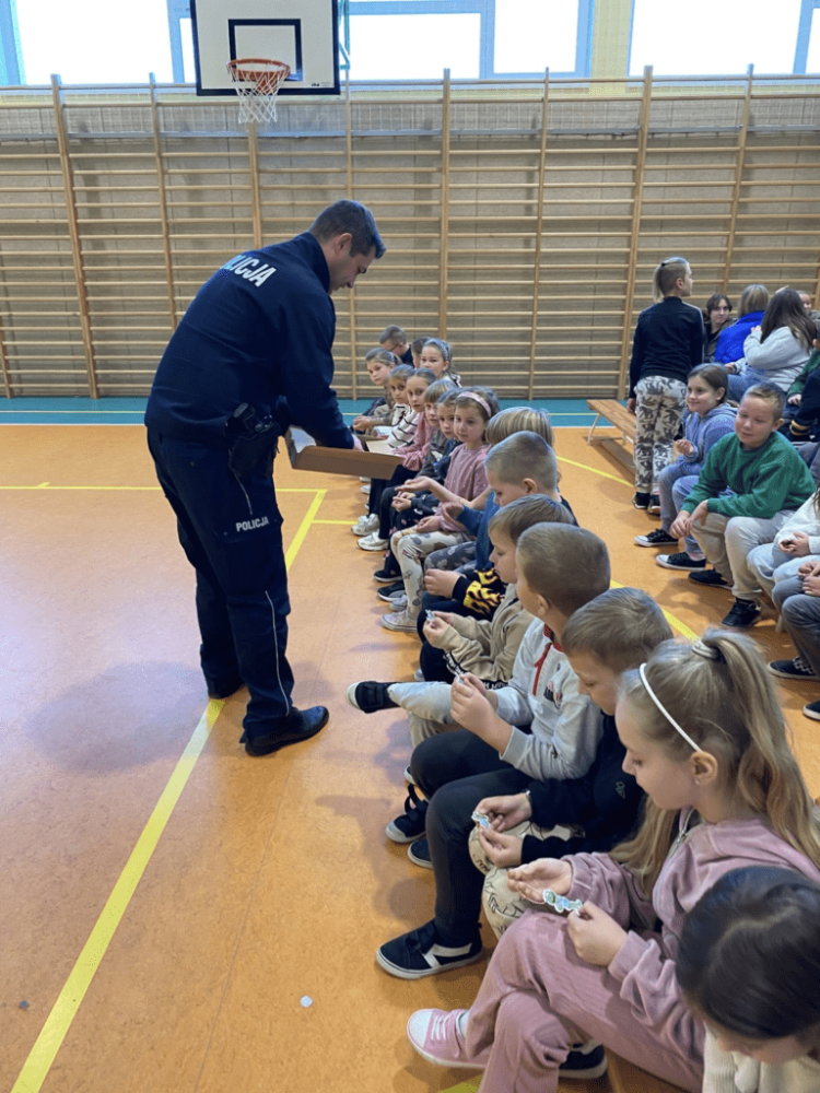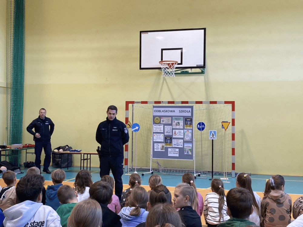 Na początek uczniowie wysłuchali prelekcji dzielnicowego, który przypomniał najważniejsze zasady bezpieczeństwa — zarówno dla pieszych, jak i użytkowników hulajnóg elektrycznych i rowerów. Na zakończenie spotkania policjanci wręczyli uczniom odblaski, podkreślając, jak ważna jest widoczność na drodze – szczególnie jesienią i zimą. Następnie druhowie z OSP Biesiadki przeprowadzili realistyczną symulację wypadku na hulajnodze, podczas której strażacy krok po kroku pokazali, jak prawidłowo udzielić pierwszej pomocy i zabezpieczyć osobę poszkodowaną. Wydarzenie zrobiło ogromne wrażenie na uczniach i z pewnością zwiększy ich świadomość na temat zagrożeń i odpowiedzialności w ruchu drogowym. Serdecznie dziękujemy OSP Biesiadki za profesjonalne przygotowanie wydarzenia i aktywny udział w naszej akcji!