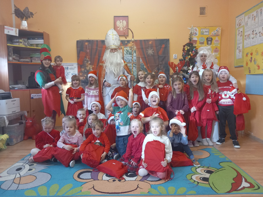 W piątek 5 grudnia w naszym przedszkolu odbyło się spotkanie z długo wyczekiwanym przez dzieci gościem Świętym Mikołajem. Przedszkolaki zaśpiewały Mikołajowi piosenkę oraz recytowały wierszyki. Święty Mikołaj obdarował wszystkie dzieci wspaniałymi paczkami. Jak co roku dzieci miały zrobione z Mikołajem pamiątkowe zdjęcia oraz wręczyły mu własnoręcznie wykonane laurki i upieczone pierniczki. Na twarzach dzieci malowała się wielka radość i przejęcie, a także nadzieja na kolejne spotkanie. Święty Mikołaju bardzo dziękujemy za odwiedziny i do zobaczenia za rok!