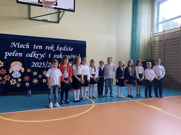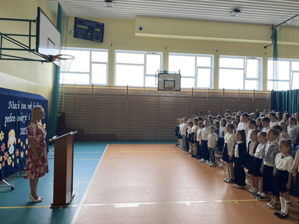 Uroczystość rozpoczęliśmy wspólnym odśpiewaniem hymnu państwowego, oddając hołd obrońcom ojczyzny i ofiarom II wojny światowej w rocznicę jej wybuchu. Pani Dyrektor serdecznie powitała uczniów, rodziców i nauczycieli, życząc wszystkim wytrwałości, sukcesów i satysfakcji z nauki i pracy.