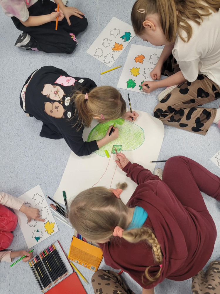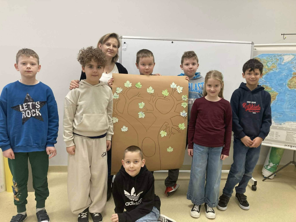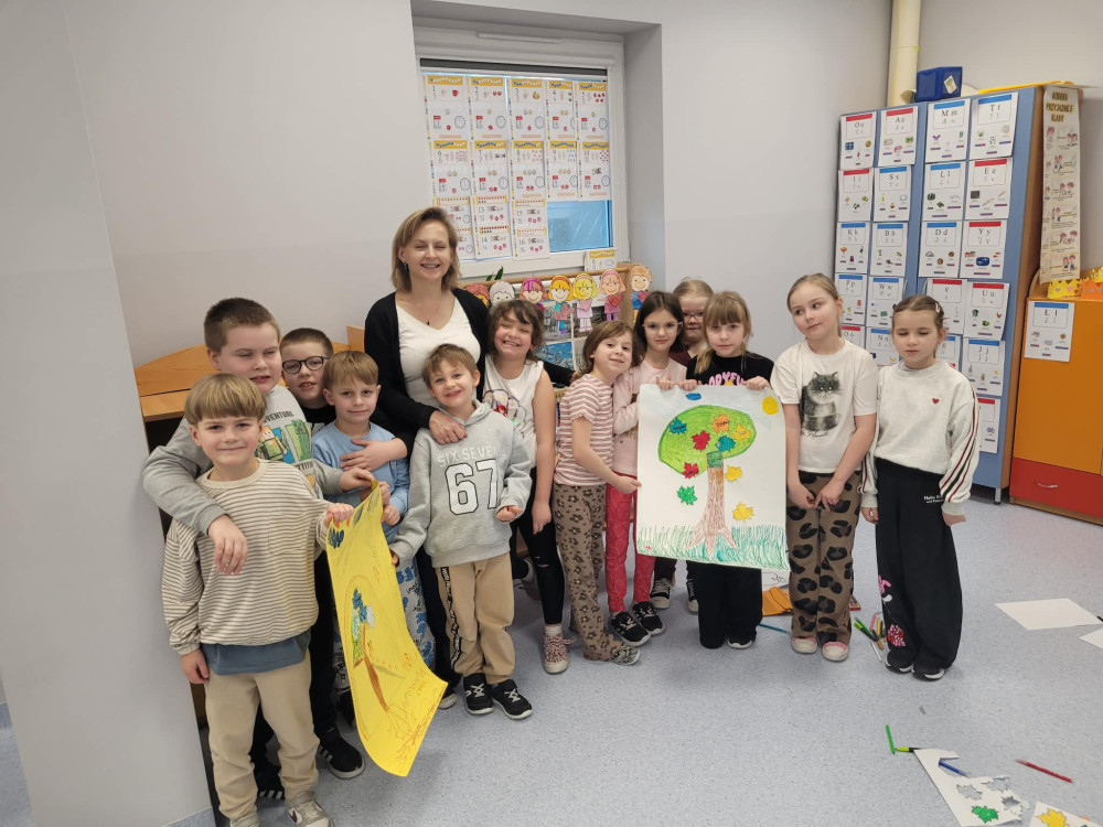 Uczniowie klasy I, II i III wysłuchali listu od drzewa, sami wcielili się w wielkie i mocne drzewa, a później wykonali drzewo wspólnych relacjach nie tylko klasowych. Dziękujemy Pani Elżbiecie i zapraszamy ponownie.