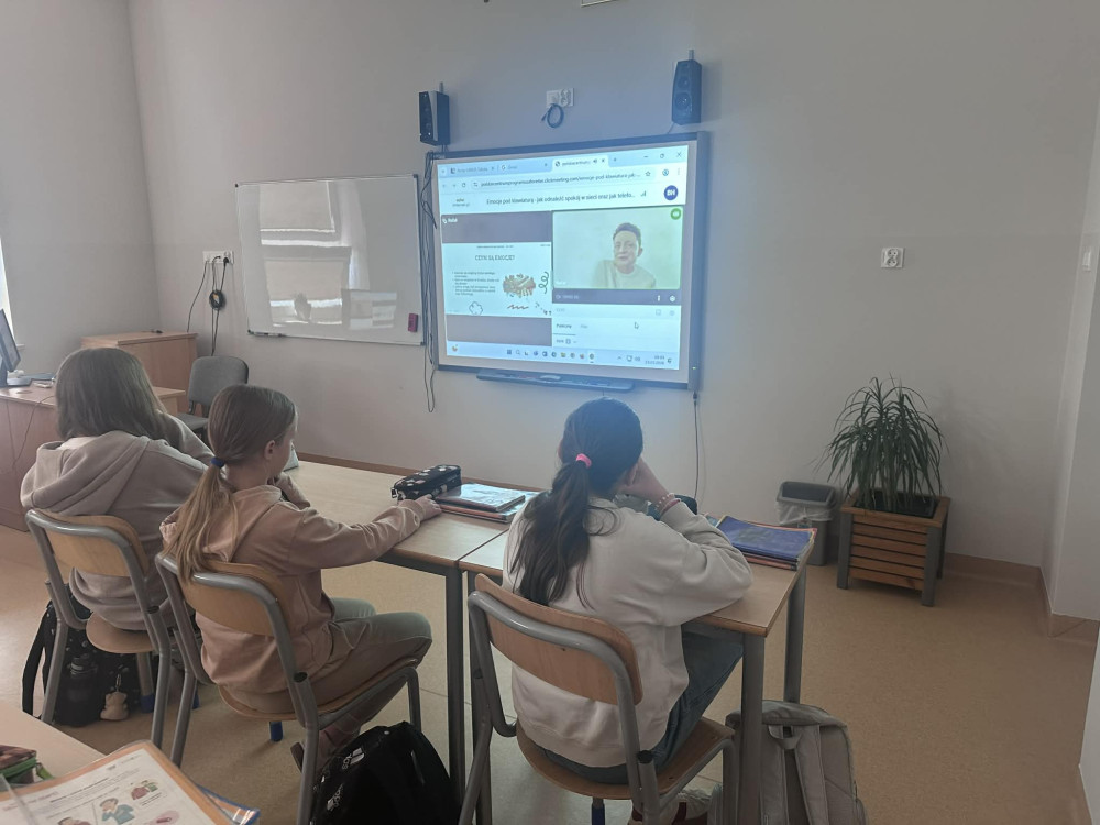 Podczas spotkania poruszono ważne tematy związane z funkcjonowaniem młodych ludzi w świecie cyfrowym. Uczniowie dowiedzieli się, jak budować dobre relacje rówieśnicze oraz jak stawiać granice w kontaktach, które mogą być dla nich niekorzystne lub toksyczne. Rozmawiano także o emocjach towarzyszących aktywności w sieci – o tym, jak odnaleźć spokój online oraz w jaki sposób pomocny może być telefon zaufania. Zwrócono również uwagę na świadome korzystanie z technologii i na to, co zrobić, aby to użytkownicy kontrolowali urządzenia i czas spędzany w sieci, a nie odwrotnie