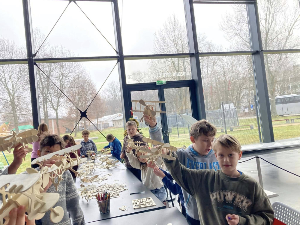 Klasy 1–4 odwiedziły Muzeum Lotnictwa Polskiego, gdzie najmłodsi z zainteresowaniem oglądali samoloty cywilne i wojskowe z różnych epok. Uczniowie poznali historię lotnictwa, zobaczyli unikatowe maszyny oraz wzięli udział w warsztatach, podczas których samodzielnie składali i ozdabiali modele helikopterów. Następnie uczniowie klas 1–4 uczestniczyli w zajęciach „W stronę światła” w Centrum Nauki i Zmysłów WOMAI. Pod opieką instruktorów wykonywali różnorodne eksperymenty, łącząc naukę z wyjątkowym doświadczeniem poznawczym i rozwijając swoją ciekawość świata.