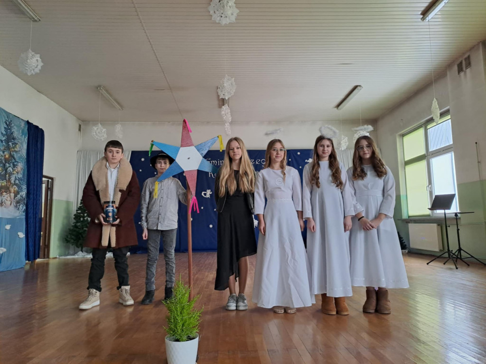 Nasi młodzi artyści zaprezentowali dwie piękne pastorałki, które porwały wszystkich zebranych do wspólnego śpiewu, tworząc wyjątkową, ciepłą i radosną atmosferę. Dziękujemy uczniom za zaangażowanie i piękne reprezentowanie naszej szkoły oraz gratulujemy odwagi i talentu!